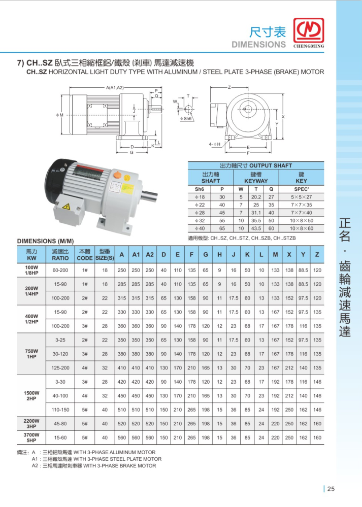 正名立式縮框剎車減速機 CV/SZB